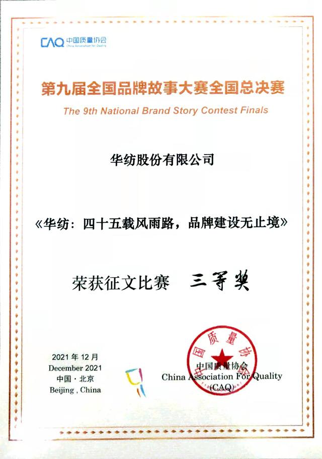 導(dǎo)讀:日前,第九屆全國品牌故事大賽落下帷幕,各獎(jiǎng)項(xiàng)均有歸屬。公司文化中心陳光娥撰寫的征文作品《華紡:四十五載風(fēng)雨路,品牌建設(shè)無止境》榮獲三等獎(jiǎng)。