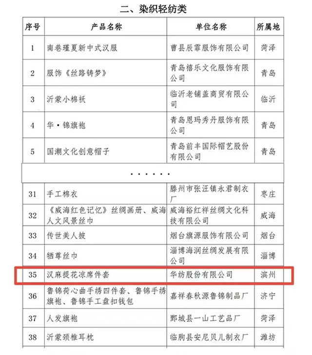 “山東手造”是省委、省政府發(fā)揮文化資源豐厚、傳統(tǒng)工藝品類齊全的優(yōu)勢(shì),創(chuàng)新打造的文化創(chuàng)意區(qū)域公共品牌,是塑造山東文化創(chuàng)意產(chǎn)業(yè)發(fā)展新優(yōu)勢(shì)的重要抓手。按照省委、省政府關(guān)于推進(jìn)“山東手造”工程的部署安排,本次“山東手造·優(yōu)選100”遴選活動(dòng)共分為傳統(tǒng)美術(shù)類、染織輕紡類、文玩用品類、刻塑鑄造類、木作家具類、傳統(tǒng)食品類六大類。其中,公司家紡床品產(chǎn)品——漢麻提花涼席件套作為染織輕紡類,成功入選2023“山東手造·優(yōu)選100”名單,這無(wú)疑是對(duì)公司產(chǎn)品品質(zhì)與工藝的高度認(rèn)可。