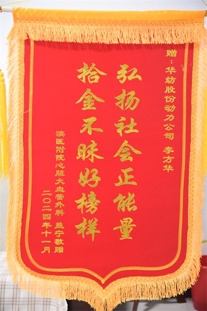 導(dǎo)讀:近日,公司員工李方華收到了一件特殊的禮物——一面寫有“弘揚(yáng)社會(huì)正能量,拾金不昧好榜樣”的錦旗。